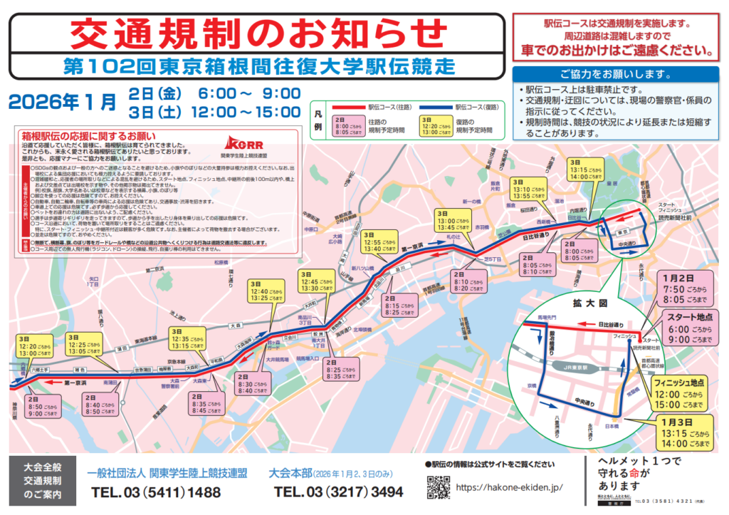 1月2日〜3日は、箱根駅伝による交通規制がございます。